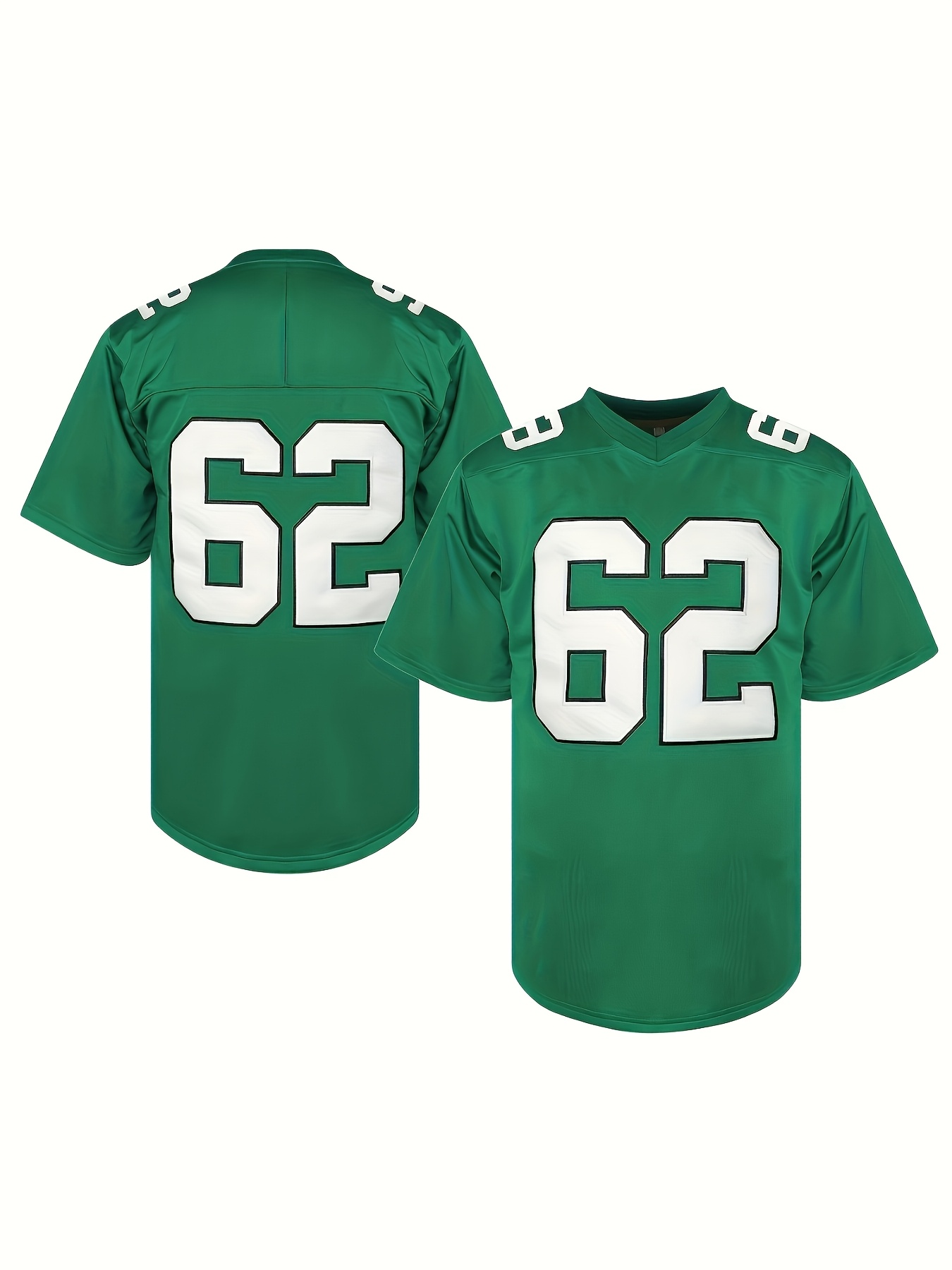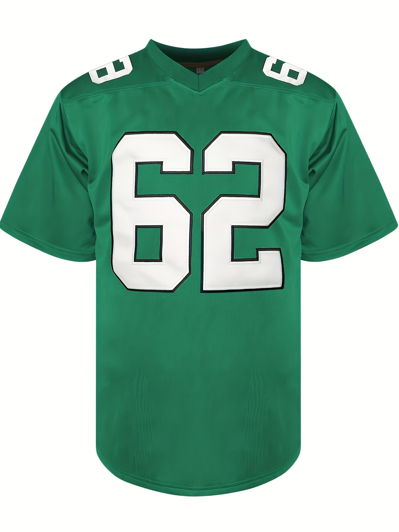1pc Men'S Green American Football Jersey - Polyester Sports Sweatshirt with Embroidered Letter and Number, V-Neck, Loose Fit, Slight Stretch Knit Fabric for Team Sports, Parties, and Casual Wear