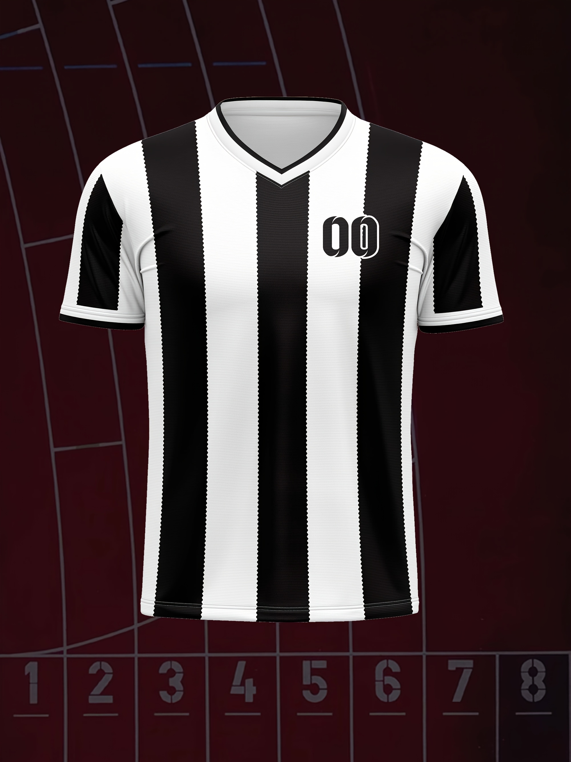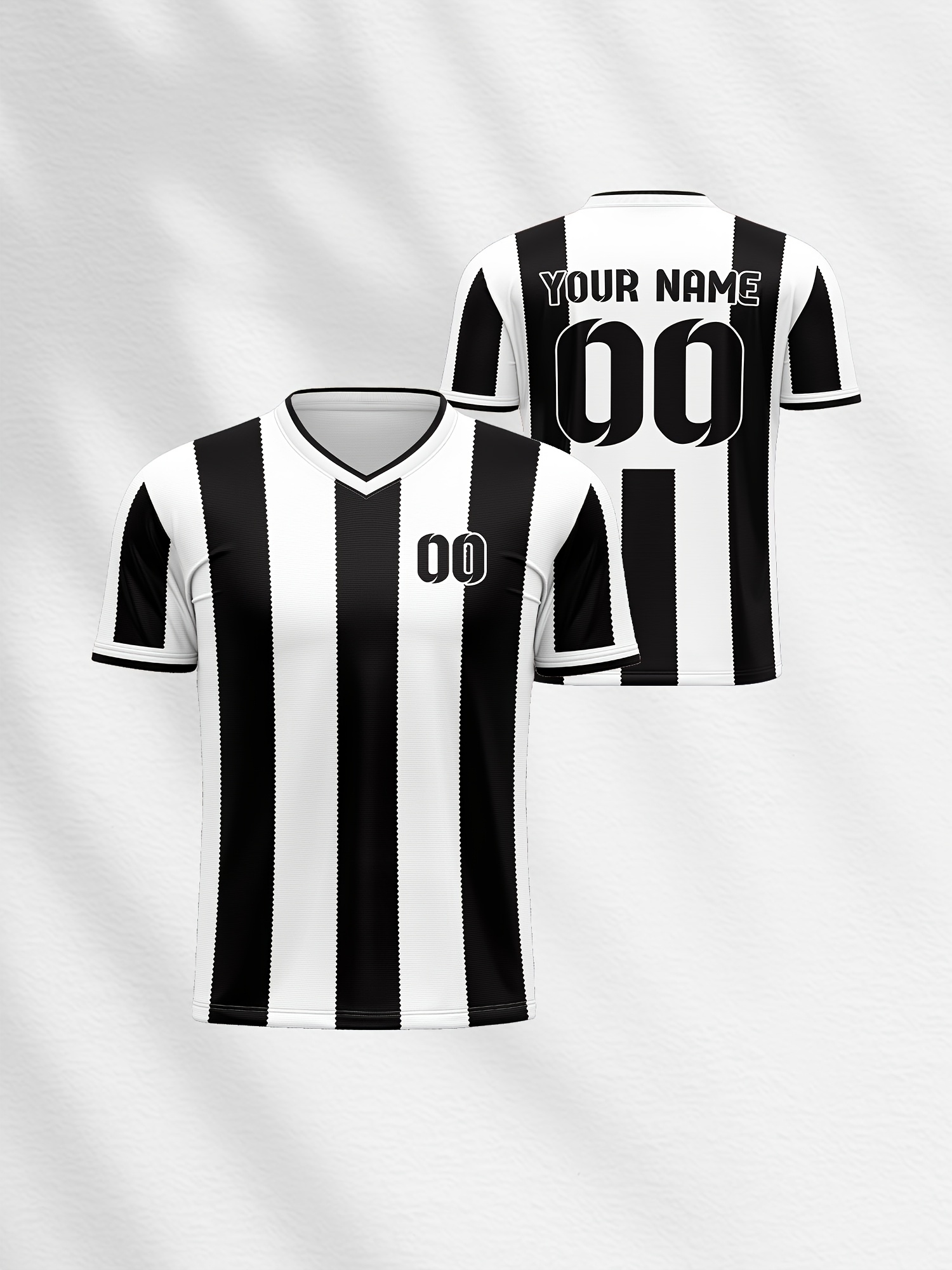 Kids' V-Neck Football Jersey - Custom Name & Number, Breathable Stretch Fabric, Black & White Stripes with Full-Body Print for Soccer, Sports & Casual Wear (Machine Washable, Spring/Fall), Sports Team Apparel, Comfortable Fit Shirt