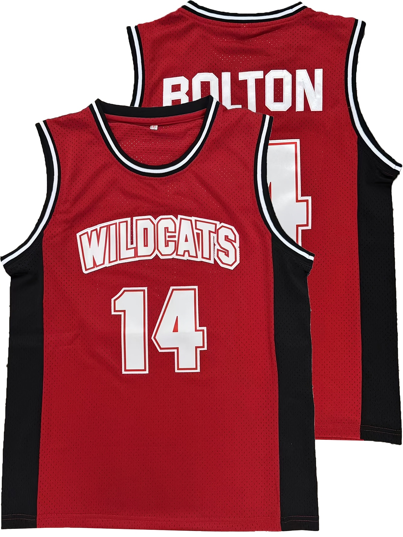 Men's #14 Red Basketball Jersey - Bolton Wildcats Embroidered, Breathable Polyester Sleeveless Sports Uniform for All Seasons, Perfect for Team Sports & Outdoor Activities, Team Apparel | Versatile Uniform | Allseason Apparel