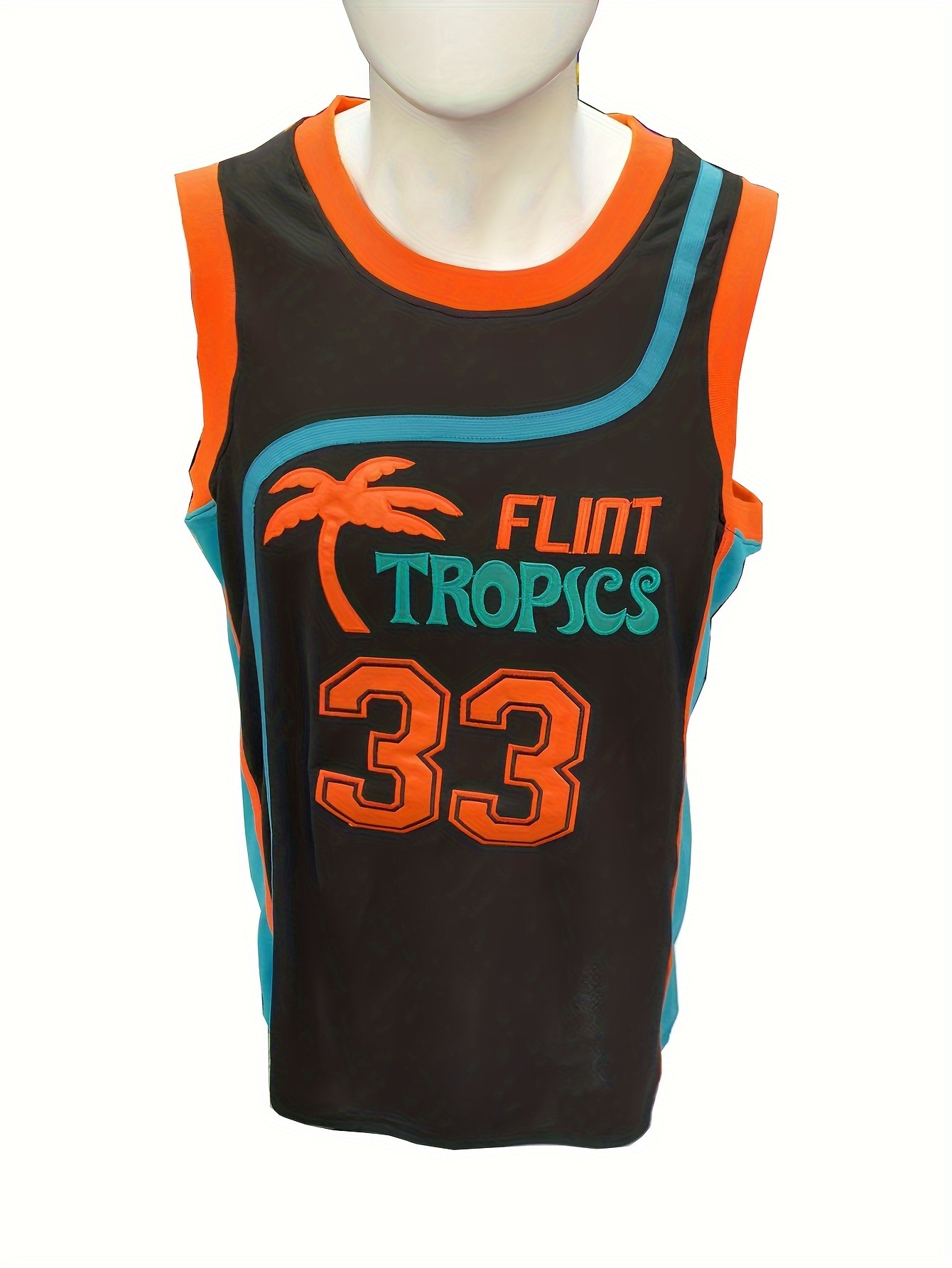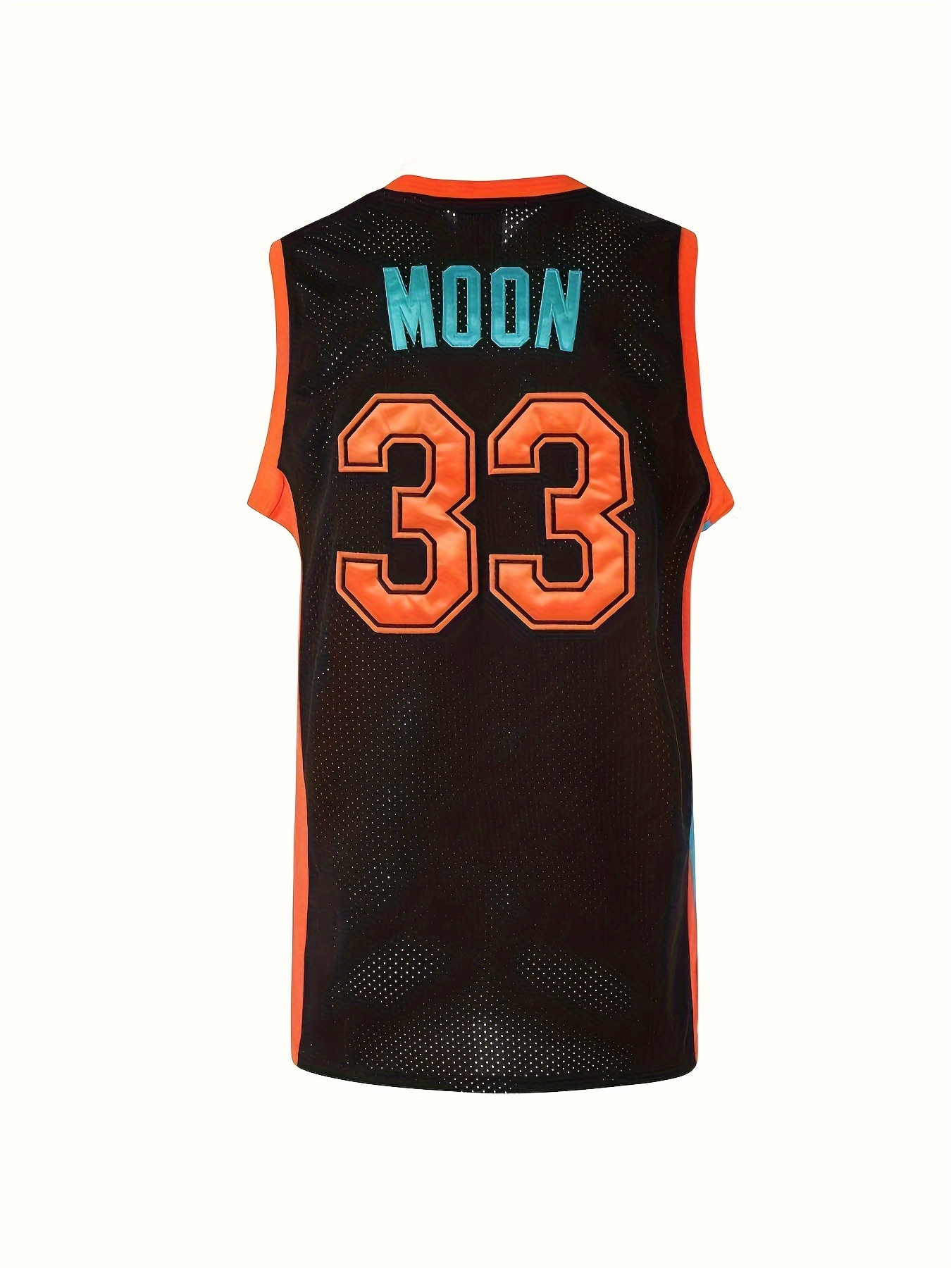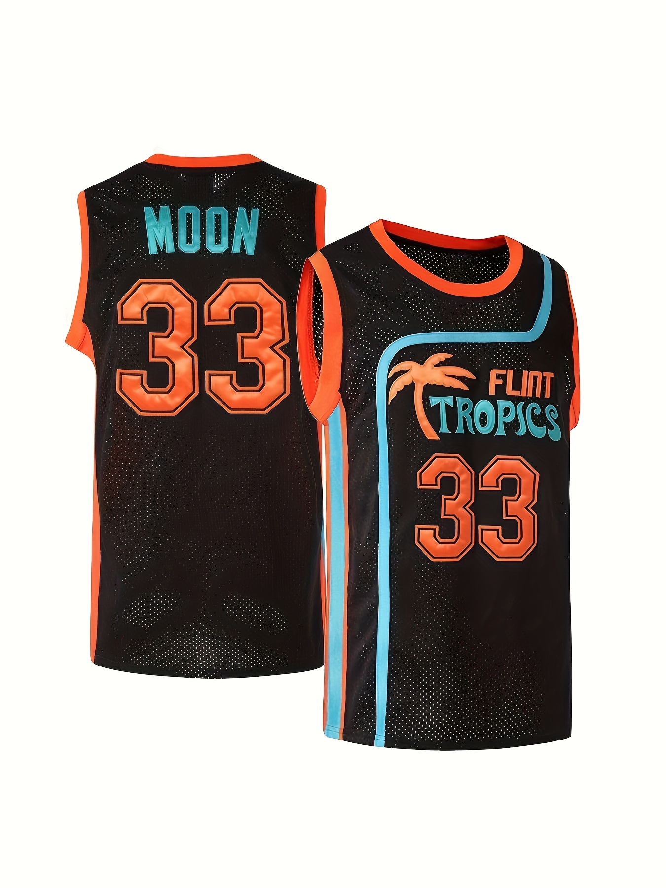 Men's #33 Embroidered Basketball Jersey - Breathable Mesh V-Neck Sleeveless Athletic Tank Top with "MOON" & "FLINT TRIPICS" Design, Loose Fit for Training & Competition, Team Apparel | Loosefit Tank | Glossy Finish Top