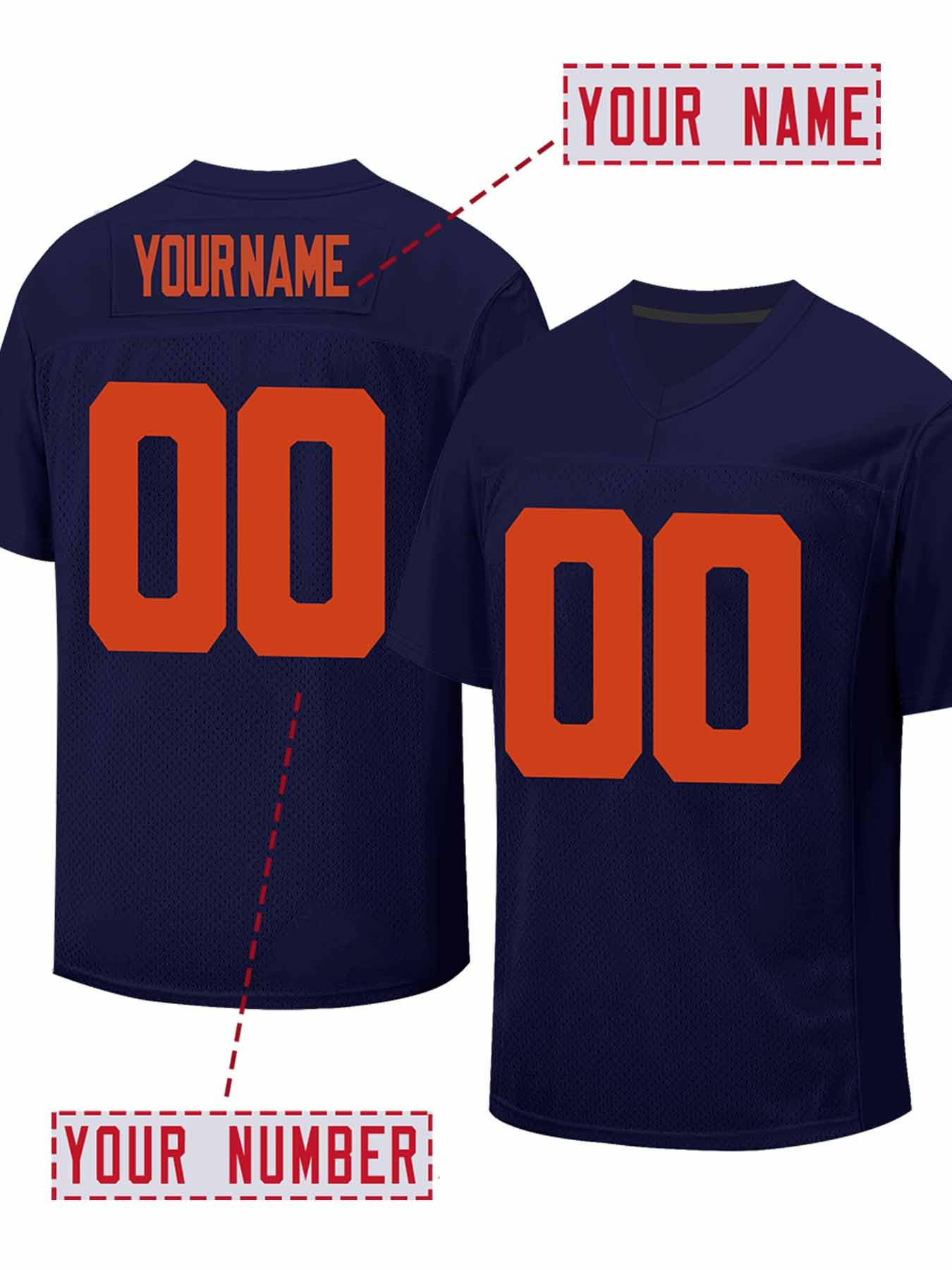 Customizable Women'S Football Shirt - Personalized Name & Number, Navy Blue with Orange Accents, V-Neck, Short Sleeve, Summer Sports Apparel for Team Building, Parties, or Casual Wear, Football Shirt, Party Apparel, Sporty Design, Comfortable Fit