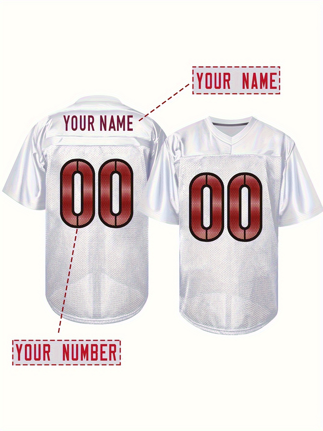Women'S Plus Size Customizable Football Jersey - Personalized Name & Number, Soft Durable Fabric, V-Neck Short Sleeve, Red & White Striped Design for Sports & Casual Wear, Football Jersey, Lifestyle Apparel, Sporty Aesthetic, Comfortable Fit
