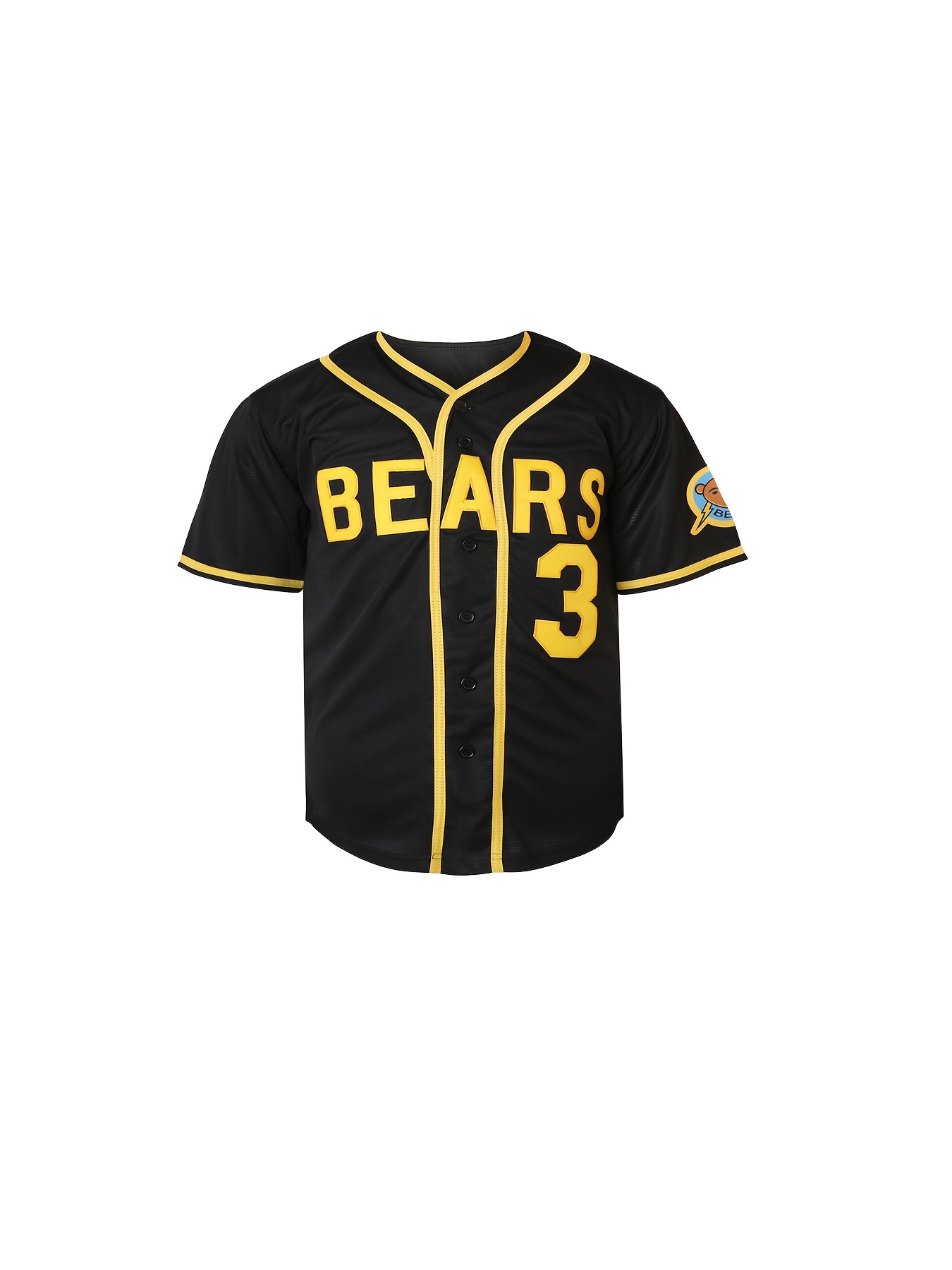 Boys's #3 Black Baseball Jersey with Embroidered Lettering - V-Neck, Button-Up, Polyester - Perfect for Sports & Casual Wear