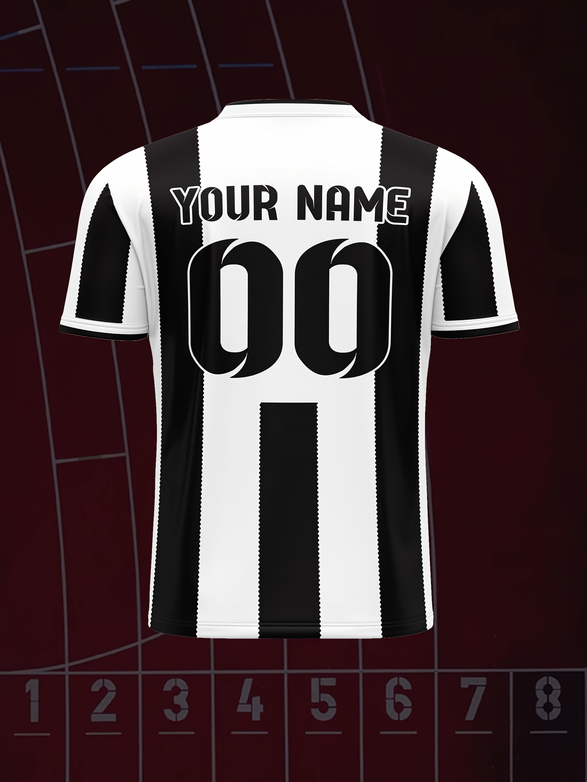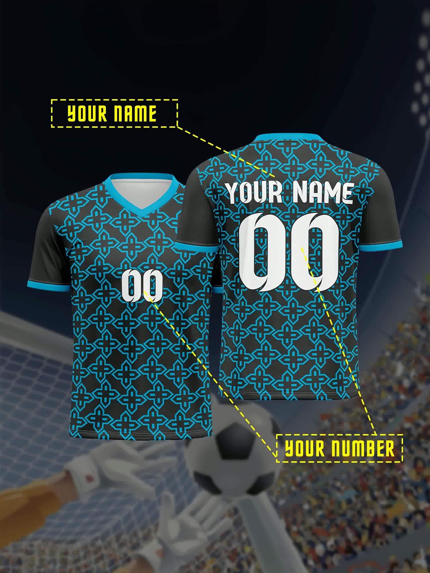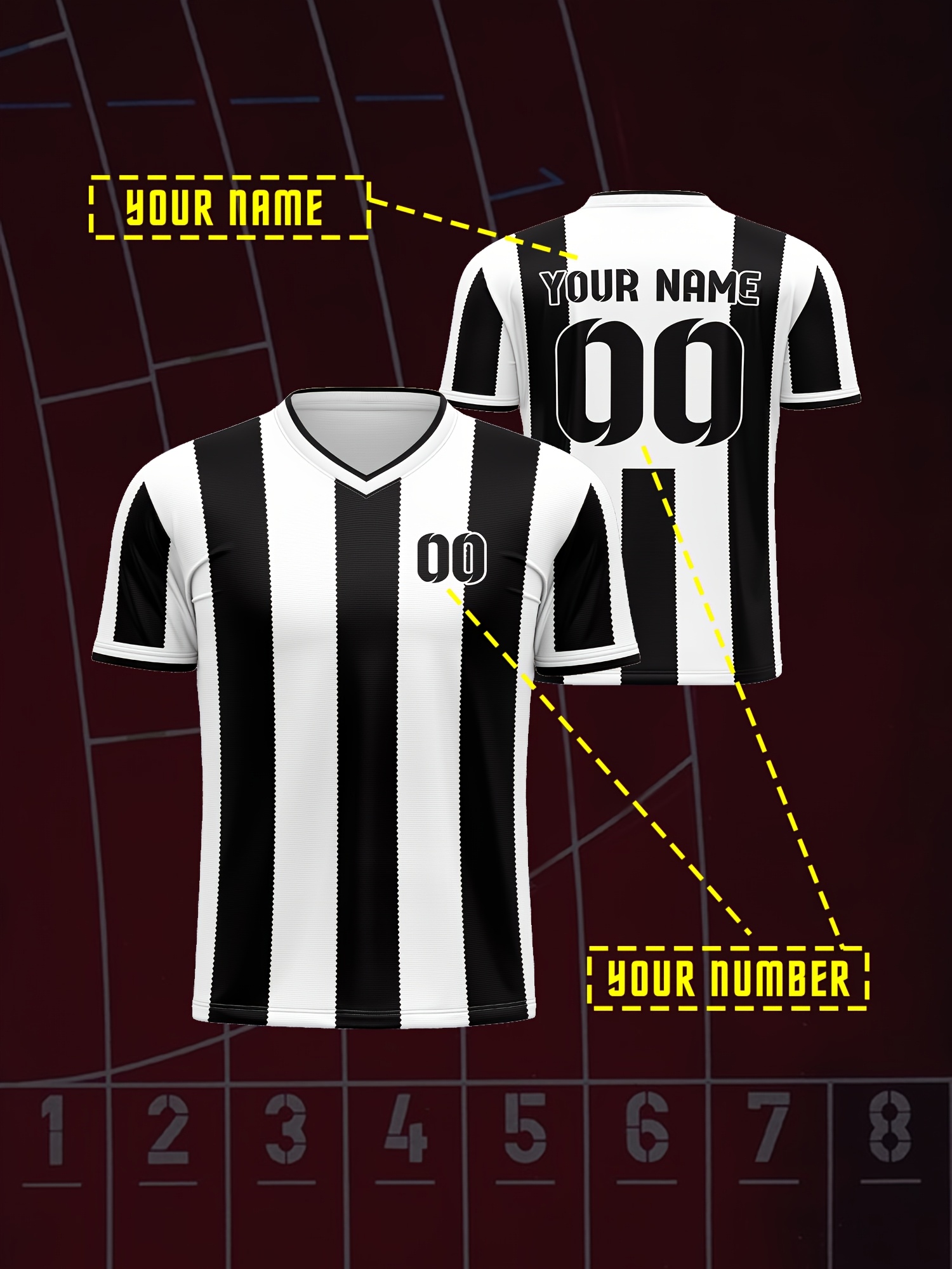 Kids' V-Neck Football Jersey - Custom Name & Number, Breathable Stretch Fabric, Black & White Stripes with Full-Body Print for Soccer, Sports & Casual Wear (Machine Washable, Spring/Fall), Sports Team Apparel, Comfortable Fit Shirt