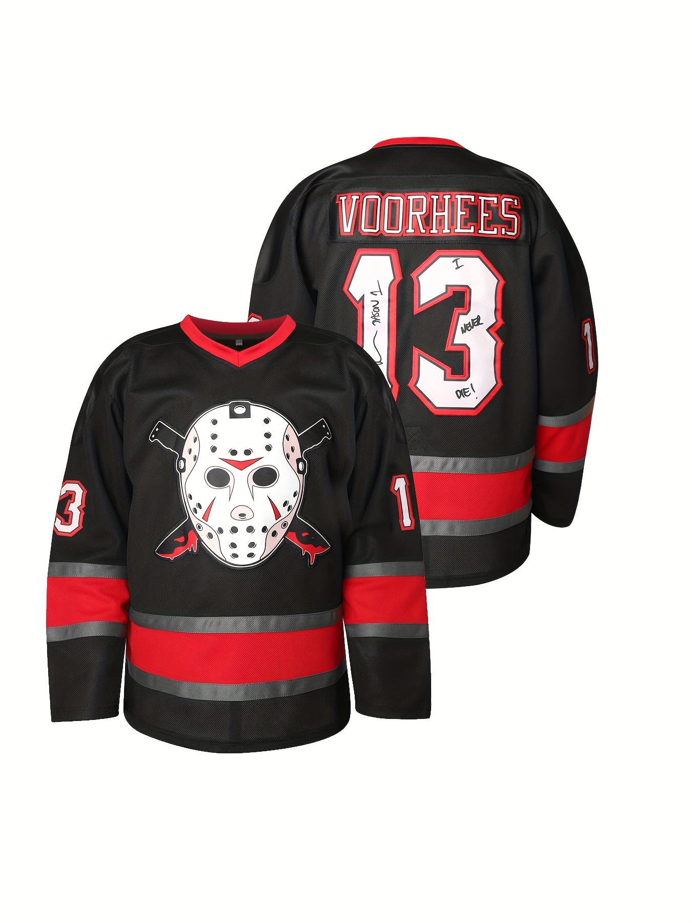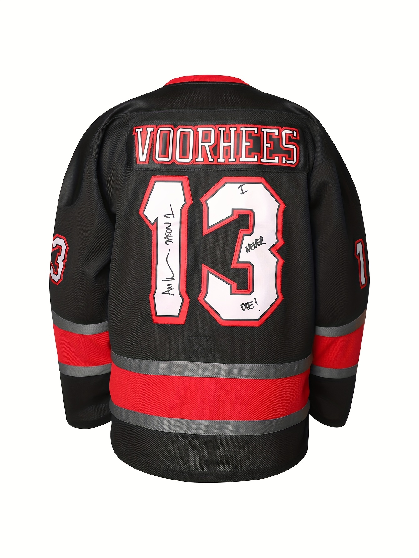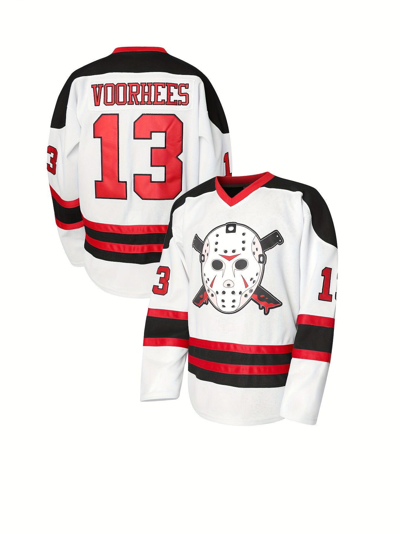 Men's #13 Voorhees Embroidered Hockey Jersey - Black & White, Polyester, V-Neck Captain's Sweatshirt with "C" Patch, Machine Washable for Year-Round Sports, Team Uniform|Sporty Look|Polyester Fiber