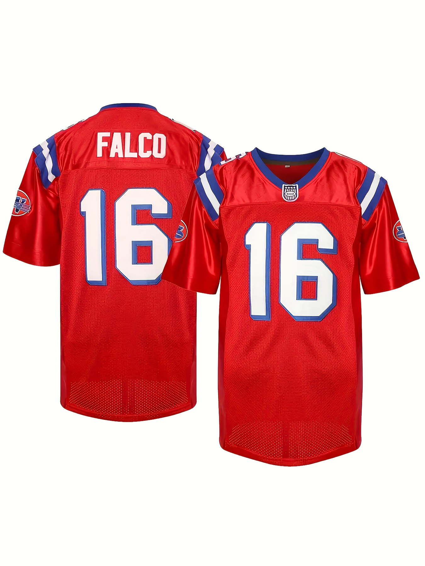 Men's #16 Red American Football Jersey - V-Neck, Name & Number, Polyester, Loose Fit for Sports, Parties & Team Activities