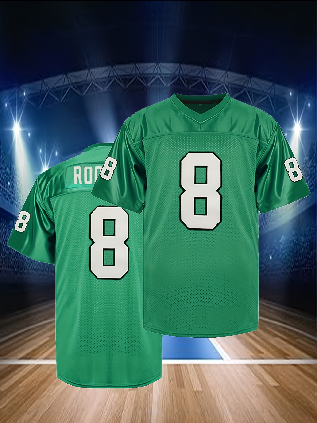 Men's #8 Green American Football Jersey - V-Neck Loose Fit with ROSS Lettering, Machine Washable, All-Season Comfort for Team Sports, Parties & Casual Wear (Sizes S-3XL), Sports Fan Apparel, Athletic Vneck Style, Durable Sportswear