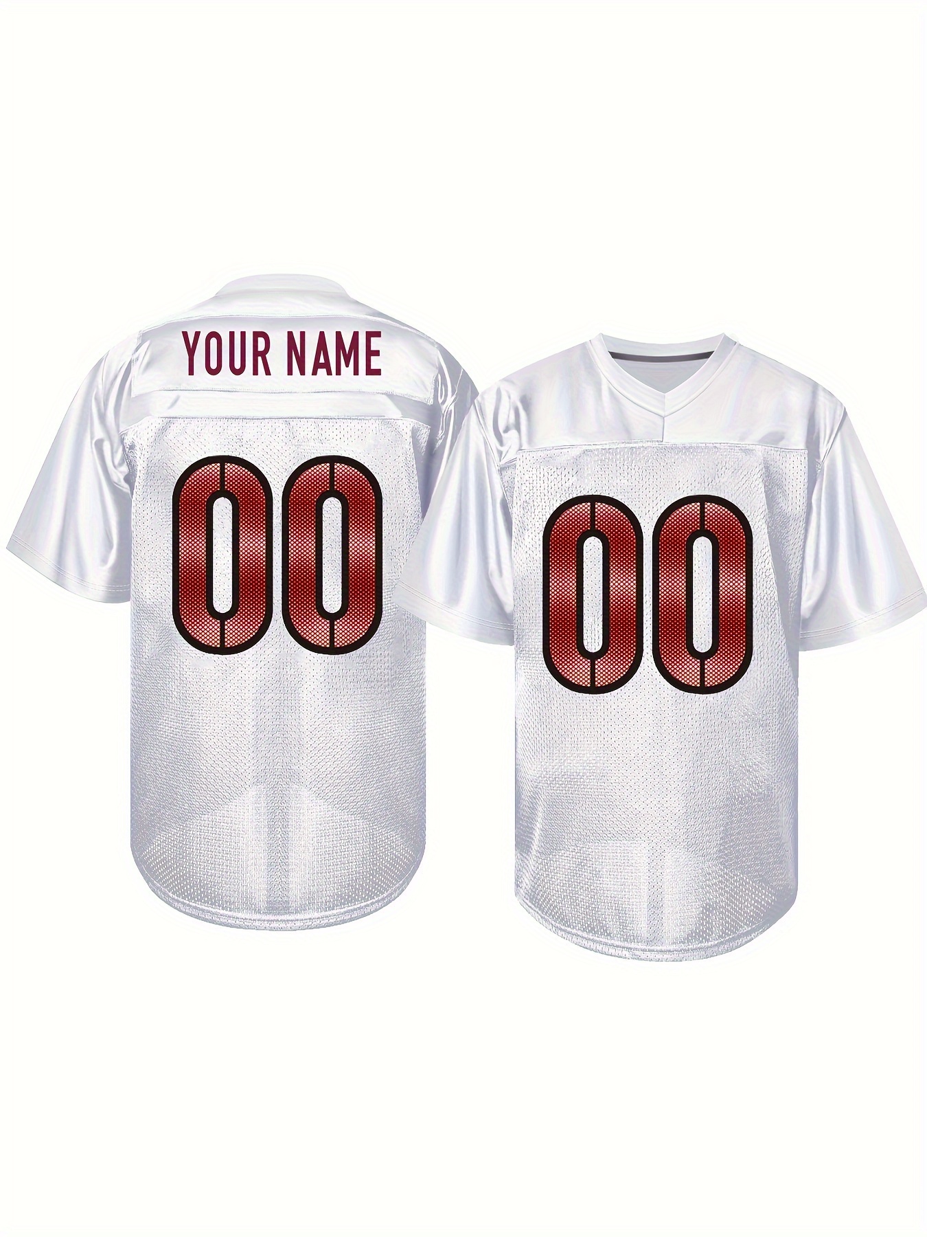 Women'S Plus Size Customizable Football Jersey - Personalized Name & Number, Soft Durable Fabric, V-Neck Short Sleeve, Red & White Striped Design for Sports & Casual Wear, Football Jersey, Lifestyle Apparel, Sporty Aesthetic, Comfortable Fit