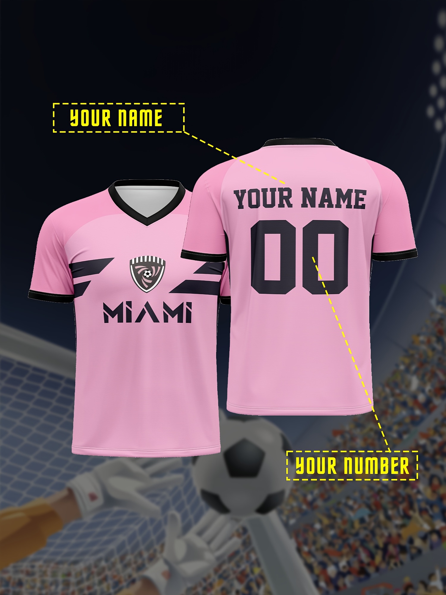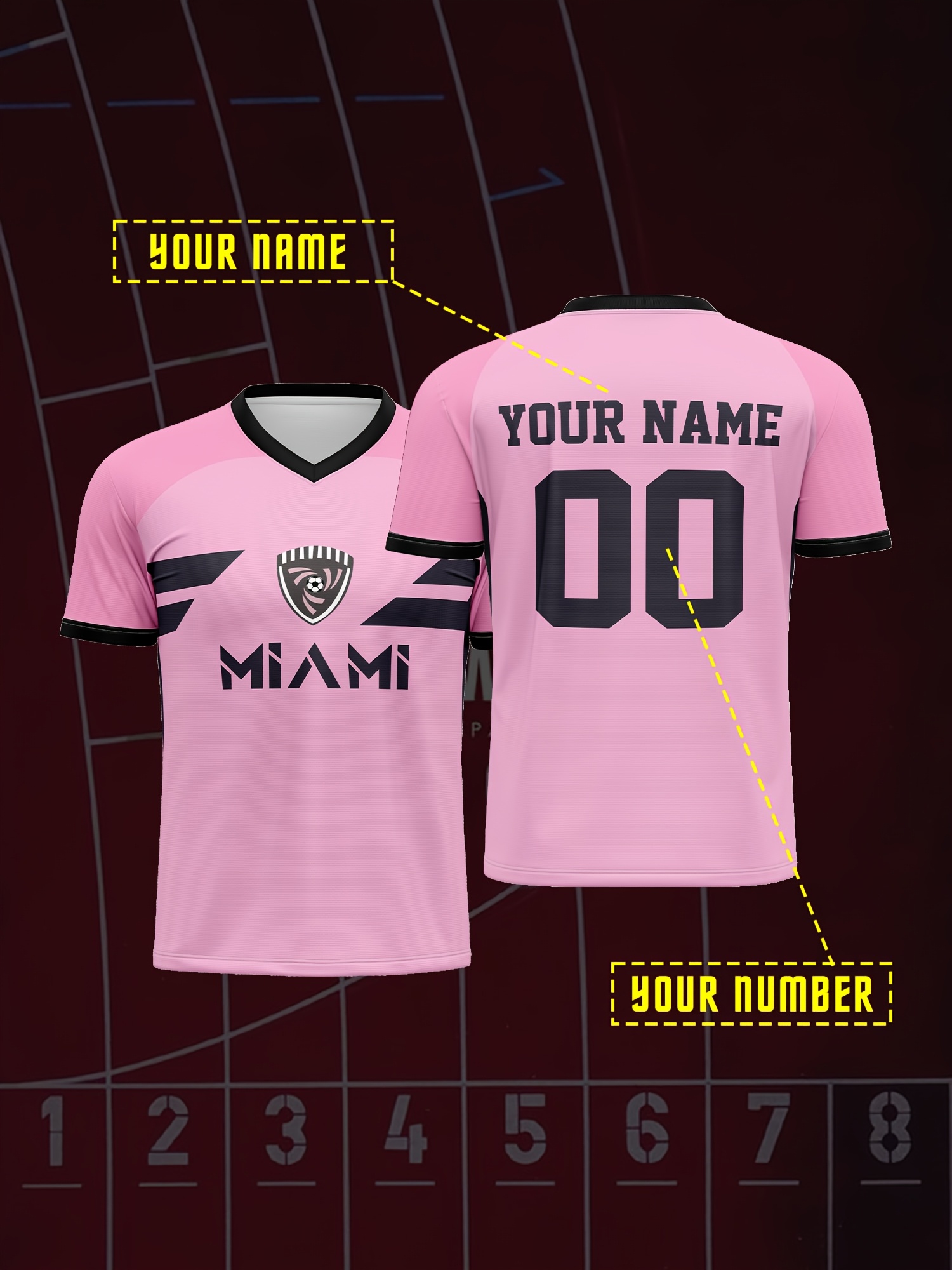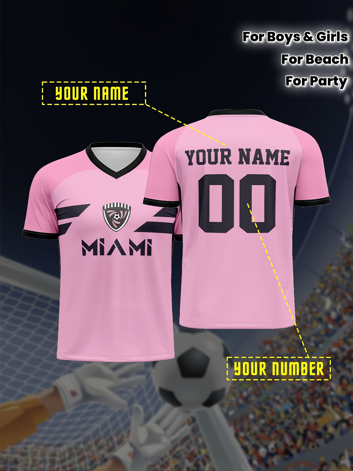 1pc Customizable Soccer Jersey for Kids - Personalized Name & Number, V-Neck, Knit Polyester, All-Season Sports & Casual Wear, Preppy Street Style, Medium Stretch, for Boys & Girls, Beach & Party Top