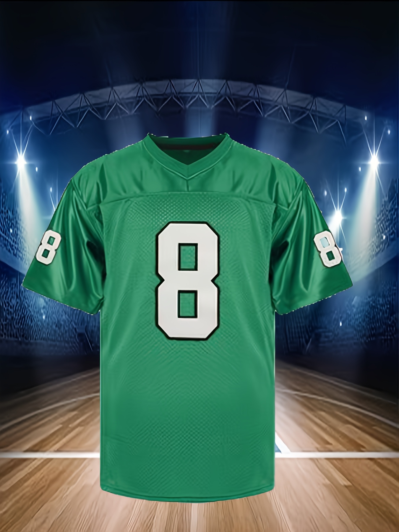 Men's #8 Green American Football Jersey - V-Neck Loose Fit with ROSS Lettering, Machine Washable, All-Season Comfort for Team Sports, Parties & Casual Wear (Sizes S-3XL), Sports Fan Apparel, Athletic Vneck Style, Durable Sportswear