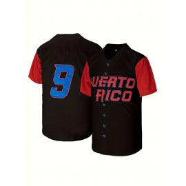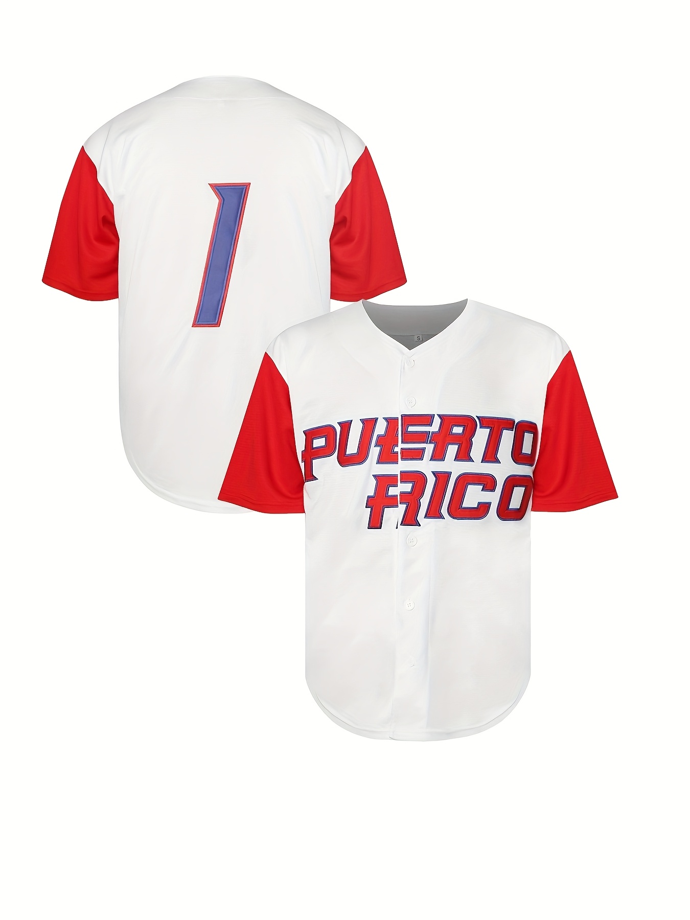 Men's Puerto Rico Baseball Jersey - Embroidered Number 1 & Name, White with Red Accents, 100% Polyester, Loose Fit V-Neck Button-Up for Sports, Halloween, Parties & Casual Wear, Puerto Rico Shirt