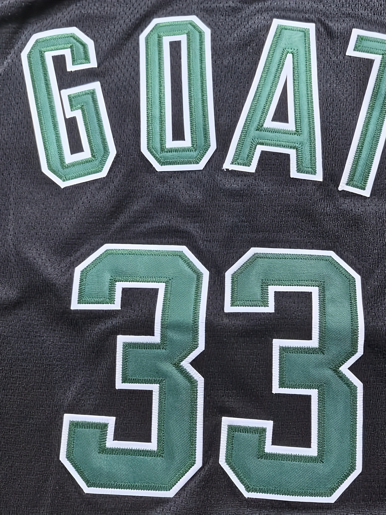 Men'S Embroidered GOAT 33 Basketball Jersey, Polyester Knit Fabric, Sports Style Crew Neck with Slight Stretch, All Seasons, Casual and Athletic Top for Outdoor, Basketball, and Party - Universal Fit